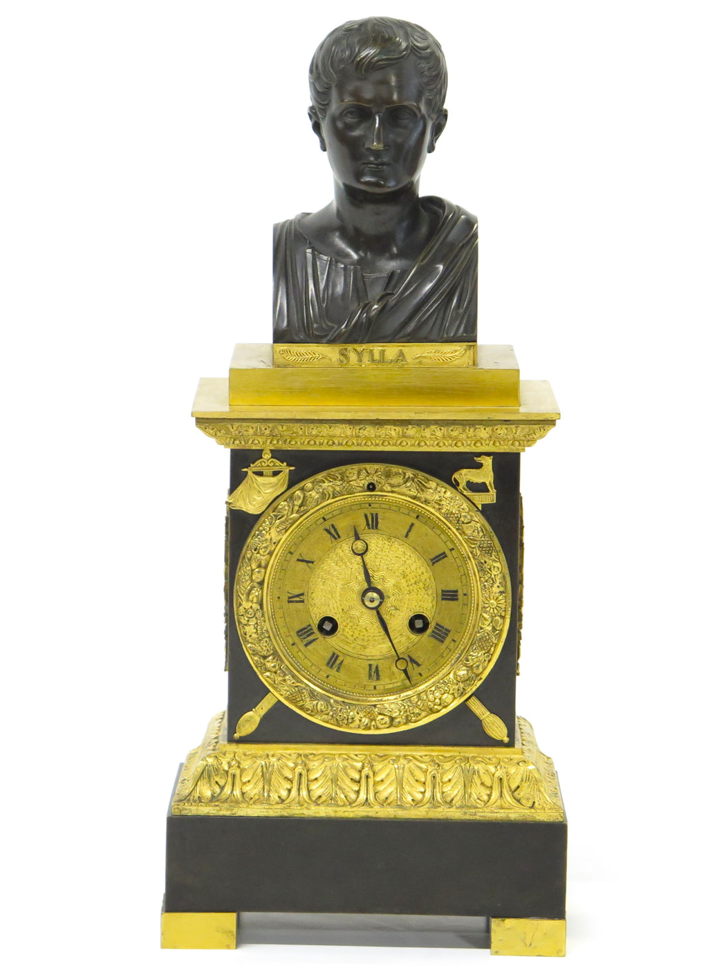 French Empire Patinated and Gilt Bronze Clock by Cleret