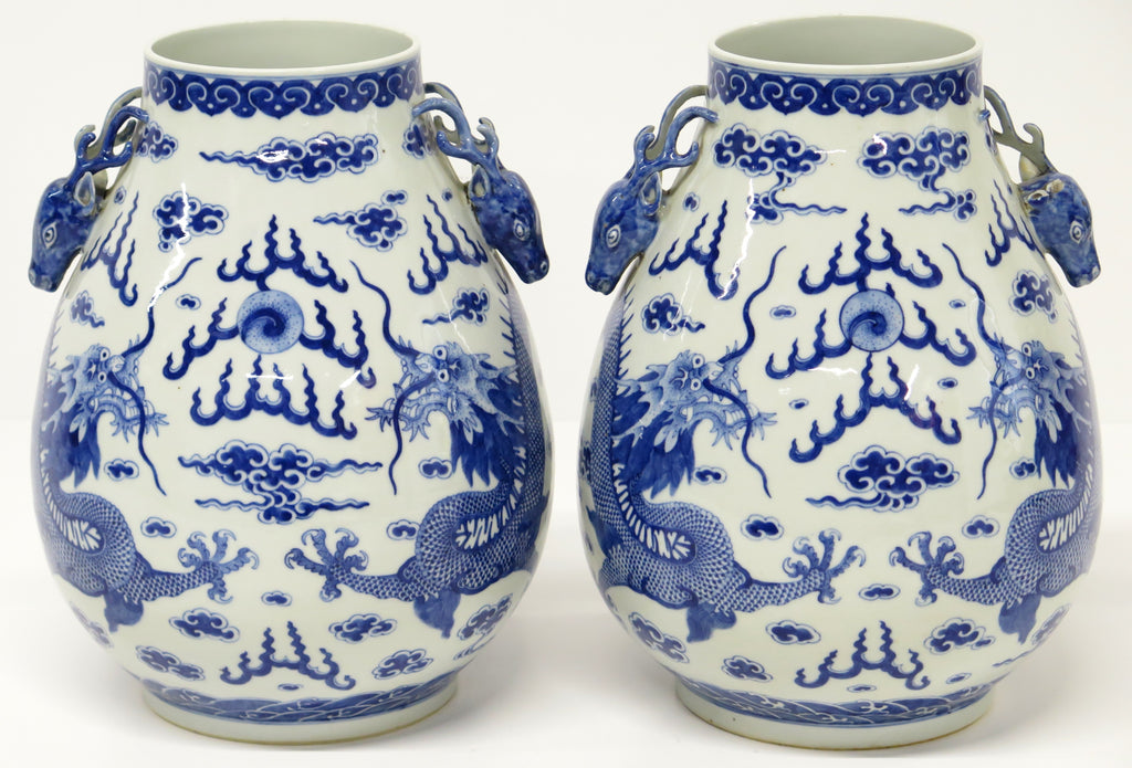 A Pair of Chinese Blue and White Gu form Vases