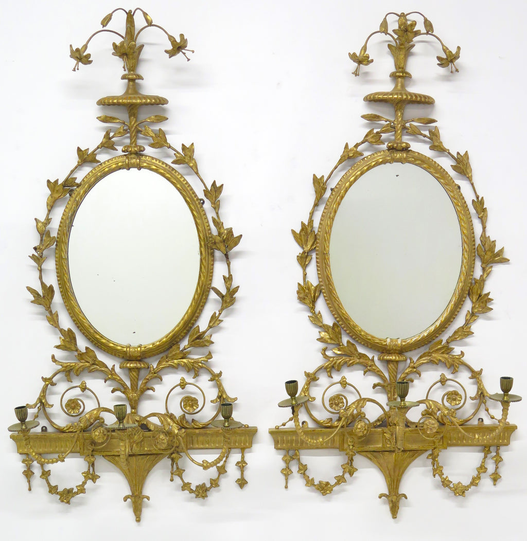 Pair of Georgian Revival Robert Adam-Style 3-Light Girandoles